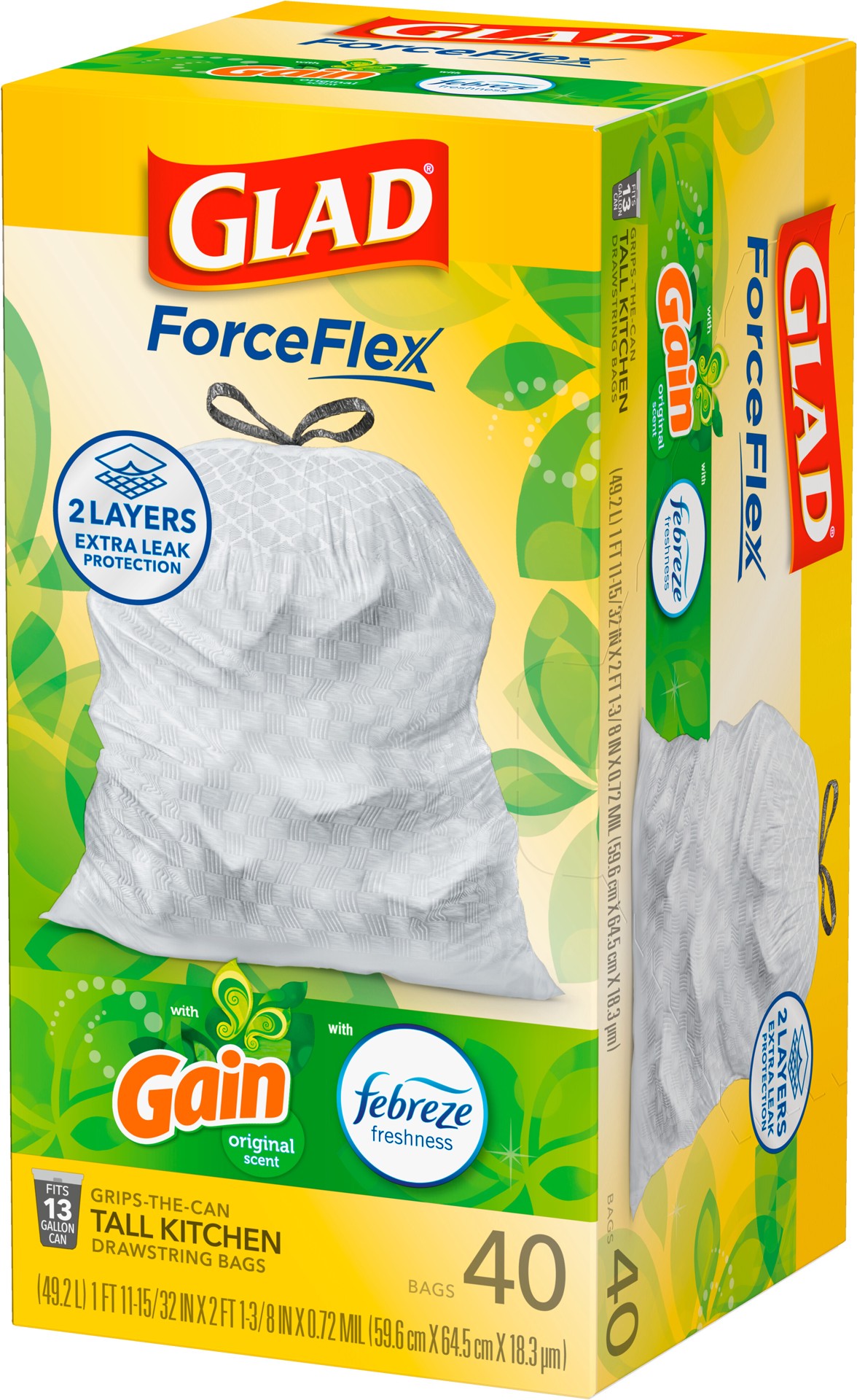 Glad Forceflex With Febreze Gain Tall Kitchen Drawstring Trash Bags 13 Gallon - 40 Count