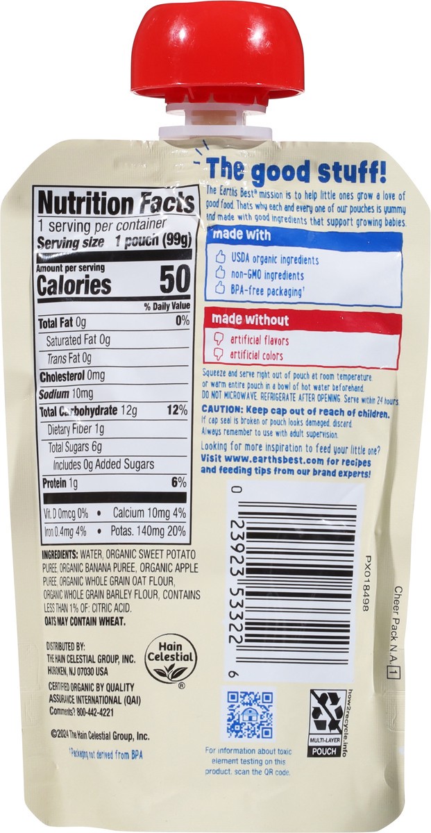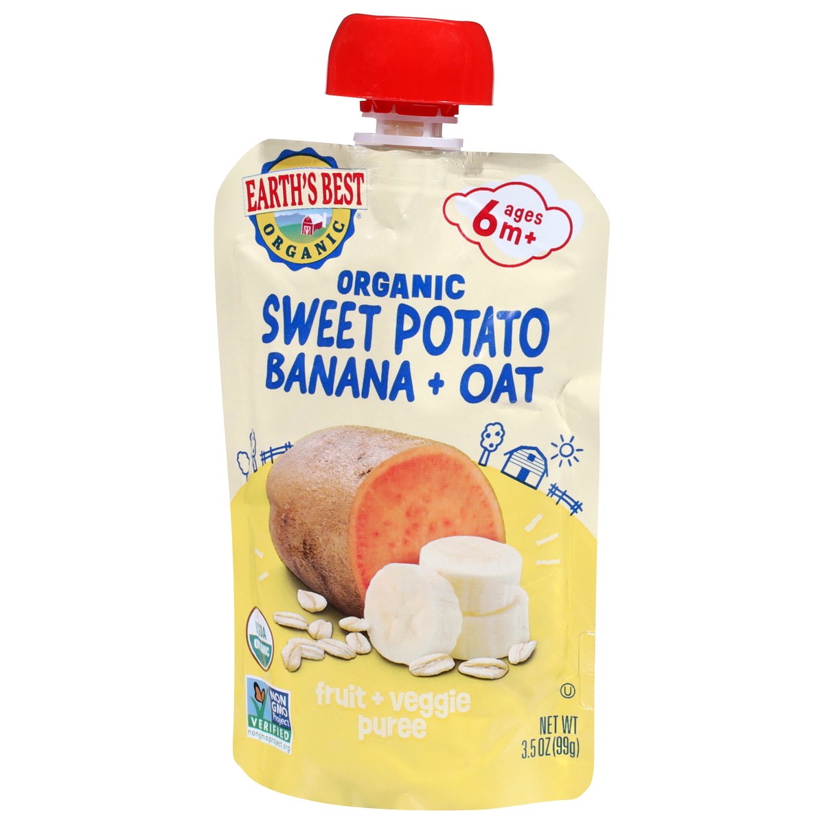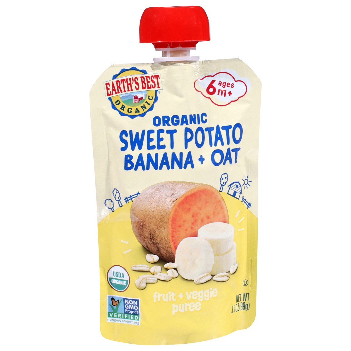 Earth's Best Organic Sweet Potato Banana + Oat Fruit + Veggie Puree 3.5 oz