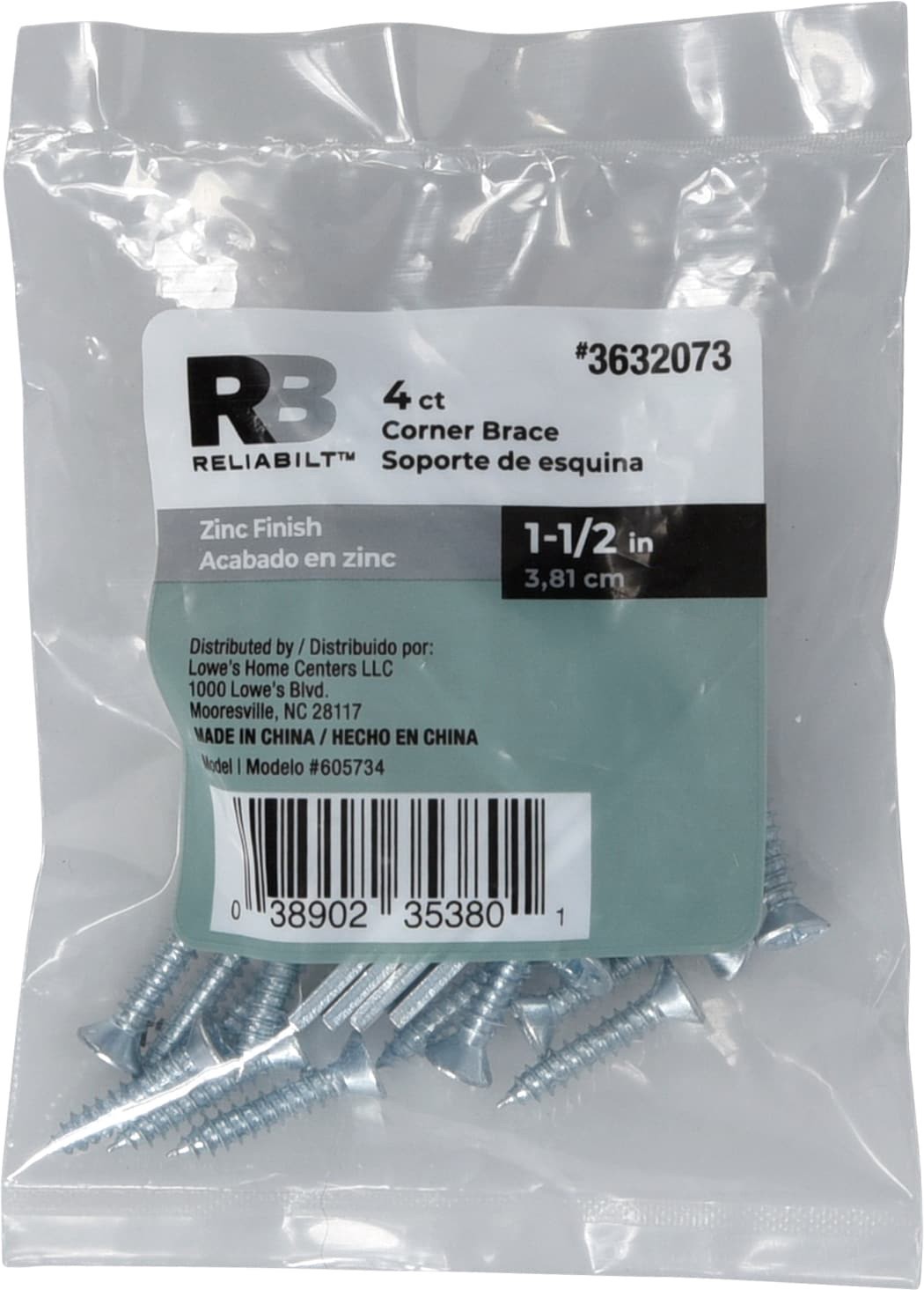 RELIABILT corner braces strengthen, protect, stabilize and decorate projects for long-term preservation and maintenance. Zinc-plating provides moderate resistance to corrosion and rust. Screw holes ar…
