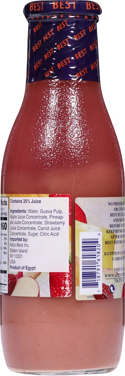 Water, Guava Pulp, Apple, Pineapple, Strawberry & Carrot Juice Concentrate, Sugar, Citric Acid (for Tartness) and Aroma.
