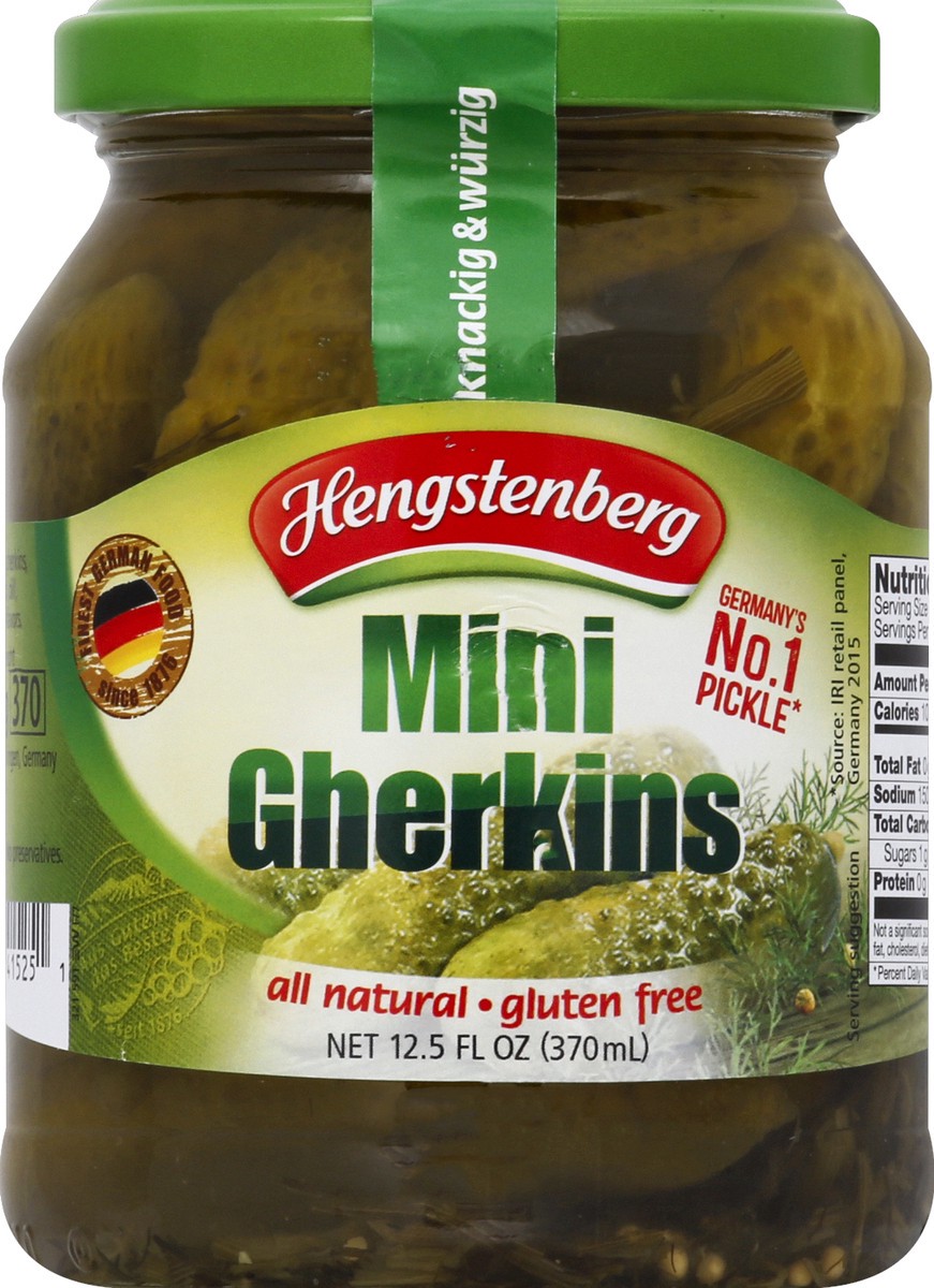 Net weight 330 g. Drained weight 185 g. Finest German food since 1876. Germany''s No. 1 pickle (Source: IRI retail panel, Germany 2015). All natural. No preservatives. Gluten free. www.henstenberg.com…