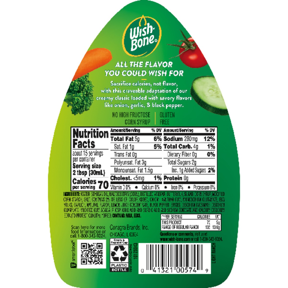Wish-Bone Light Ranch Dressing adds bold flavor to all your favorite dishes. A deliciously rich adaptation of Wish-Bone's classic recipe, this ranch salad dressing adds savory flavor to salads, sandwi…