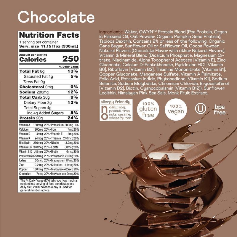 OWYN Complete Nutrition Dairy Free Protein Shake Chocolate Non-Caffeinated - 44.6 fl oz/4pk