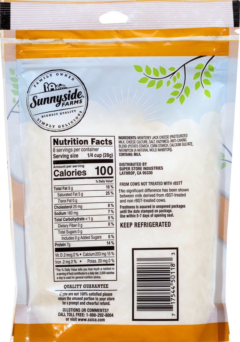 Sunnyside Farms Monterey Jack Shredded Cheese 8 oz