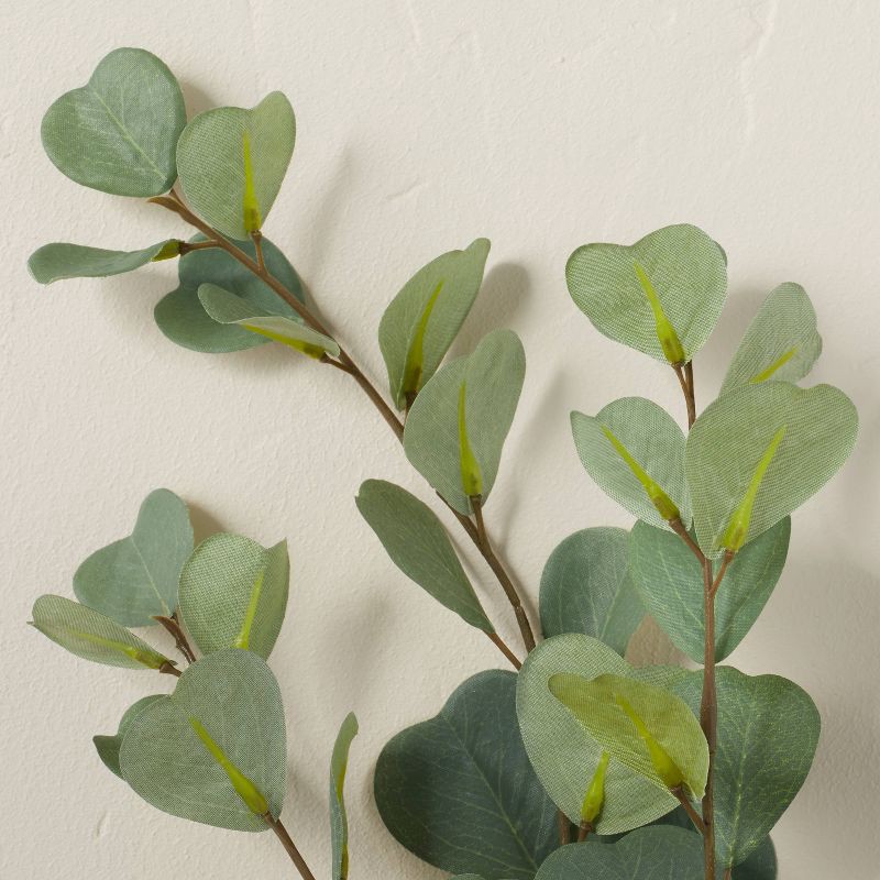 Bring the beauty of the outdoors into your home with none of the maintenance required by real plants with the 18" Faux Heart Eucalyptus Stem - Hearth & Hand with Magnolia. Boasting lush green eucalypt…
