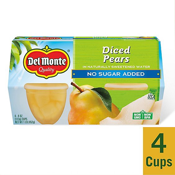 Del Monte No Sugar Added Diced Pears Fruit Cup Snacks - 4 - 4 Oz