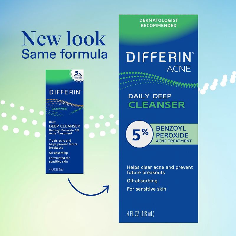 Differin Daily Acne Face Wash Cleanser with Benzoyl Peroxide - 4 fl oz: Liquid, Oily & Sensitive Skin, Unscented