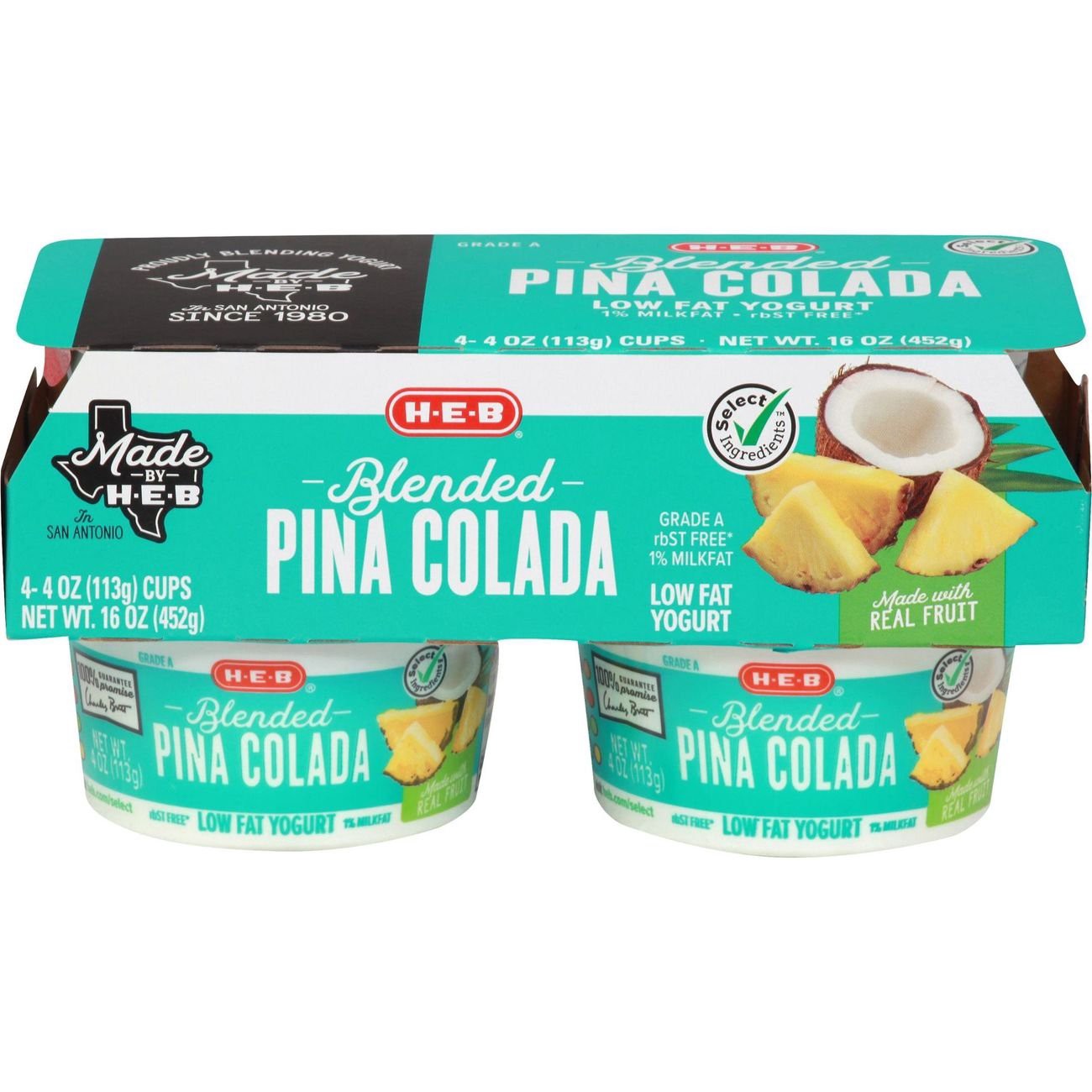 Enjoy the delicious duo of pineapple and coconut in every spoonful of H-E-B blended piña colada yogurt. Low in fat, it's made with rBST-free* milk. Pick up this 4-pack and slide some cups into packed …