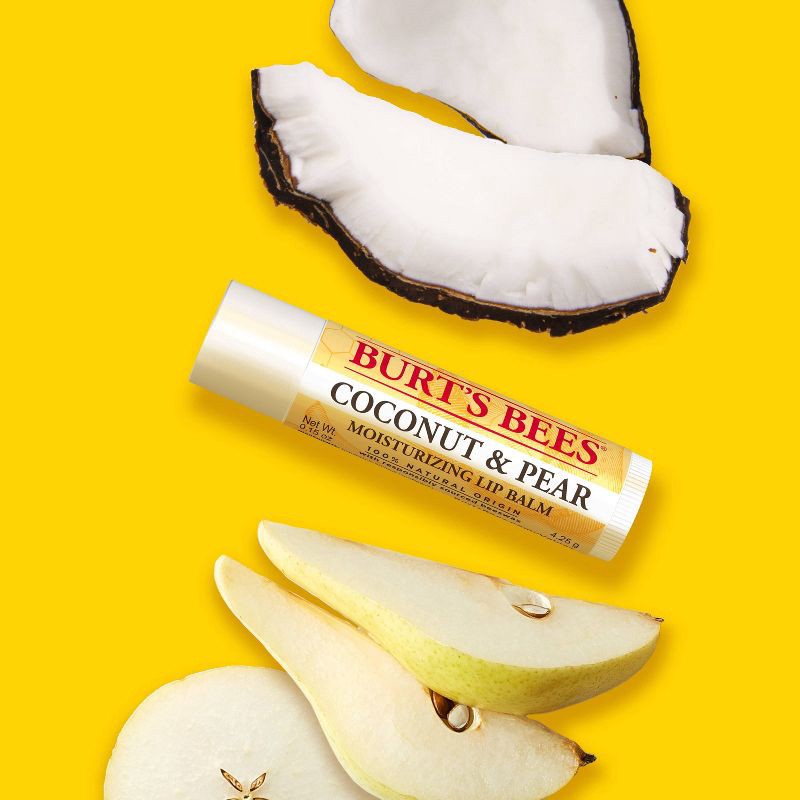 - FLAVORFUL LIP BALM: One 0.15 oz. lip balm tube of Burt's Bees Coconut and Pear Lip Balm to moisturize and soften your lips