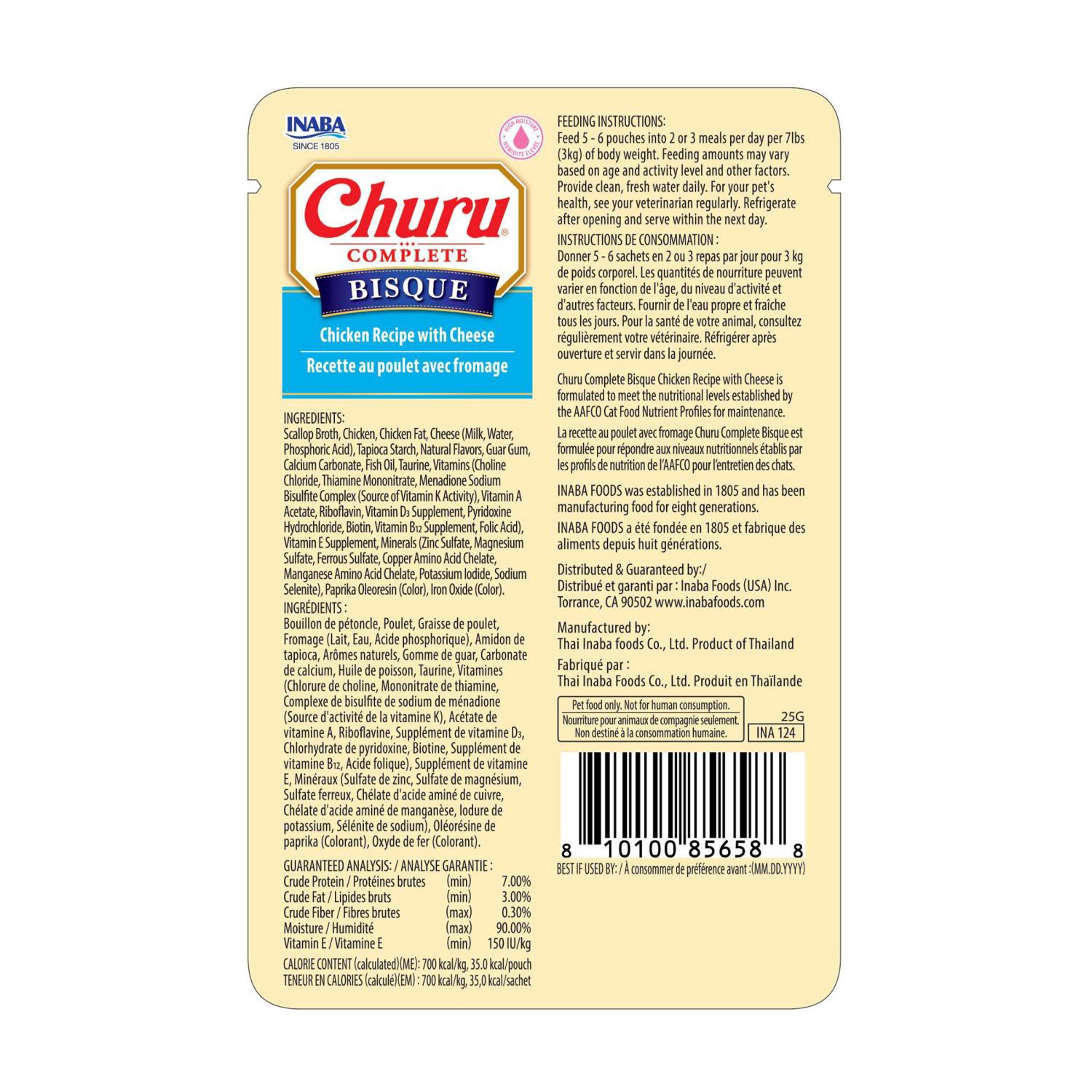 Inaba Churu Complete Bisque Pouch Chicken With Cheese Recipe Wet Cat Food, 1.76 oz