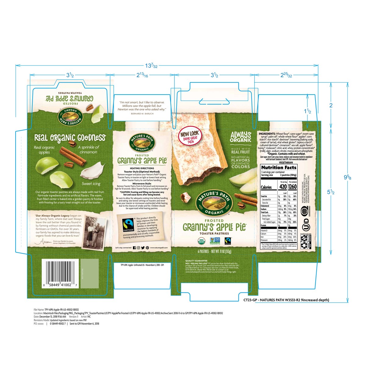 Nature's Path frosted apple cinnamon organic toaster pastries contain a real apple fruit filling, spiced with organic cinnamon, and encased in a lightly frosted organic pastry. You get 2 pastries per …