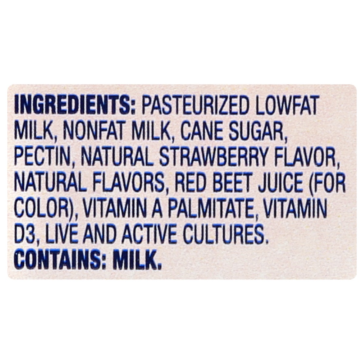 Pasteurized Lowfat Milk, Nonfat Milk, Cane Sugar, Pectin, Natural Strawberry Flavor, Natural Flavors, Red Beet Juice (for Color), Vitamin A Palmitate, Vitamin D3, Live and Active Cultures, 12 Live & A…