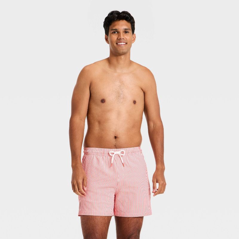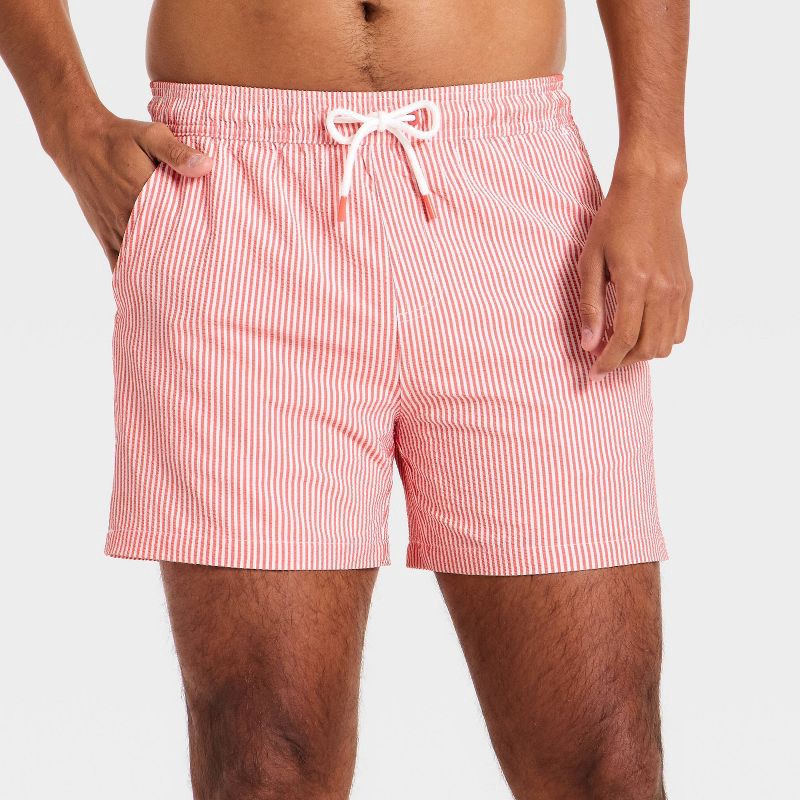 Men's 5'' Swim Trunks with Boxer Brief Liner - Goodfellow & Co™ Coral Orange Striped XXL