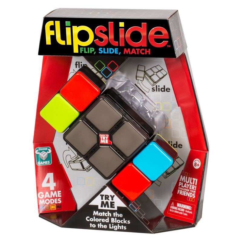 Flip, slide and match your way to success with the Flipslide Handheld Electronic Game. The four squares at the center will light up with different colors to be matched with the two-square panels on ei…