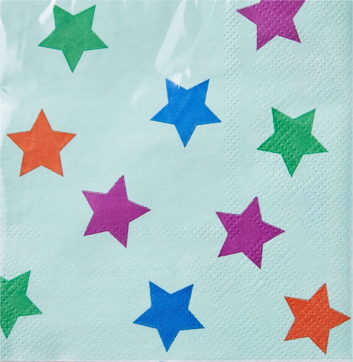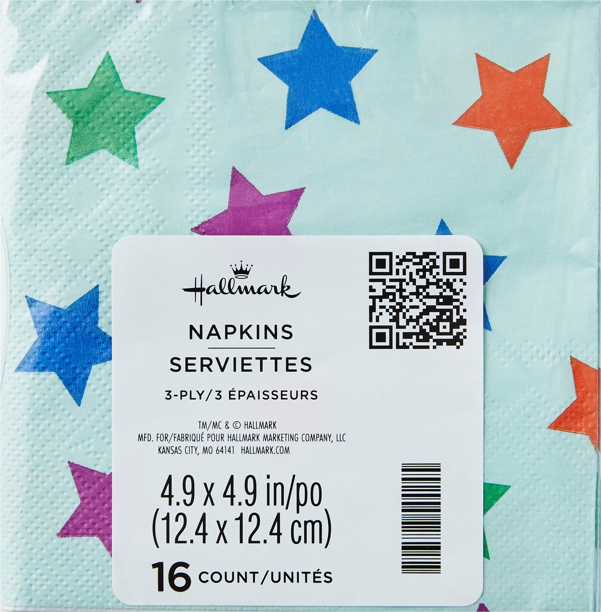 Pretty up the party with mint green cocktail napkins featuring scattered stars in hot pink, orange, green and blue. Hallmark paper napkins are perfect for desserts or appetizers.