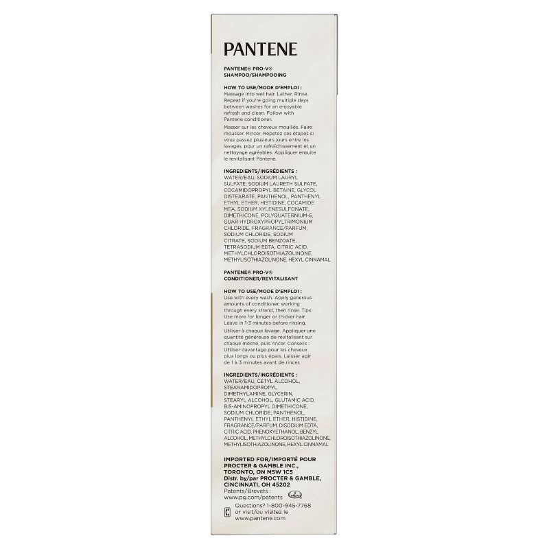 Pantene Pro-v Shampoo Ingredients: Water/eau, Sodium Lauryl Sulfate, Sodium Laureth Sulfate, Cocamidopropyl Betaine, Glycol Distearate, Sodium Citrate, Cocamide Mea, Sodium Xylenesulfonate, Dimethicon…
