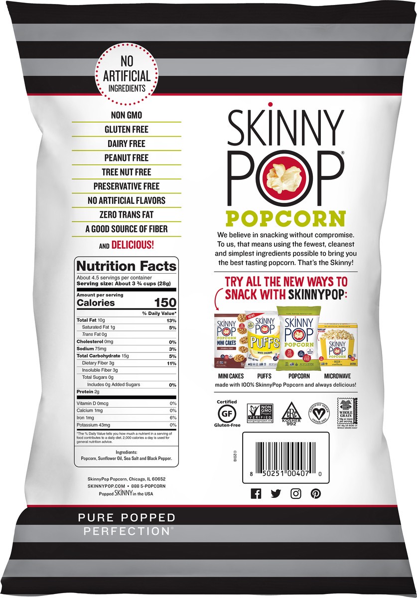 SkinnyPop Salt and Pepper Popcorn 4.4oz