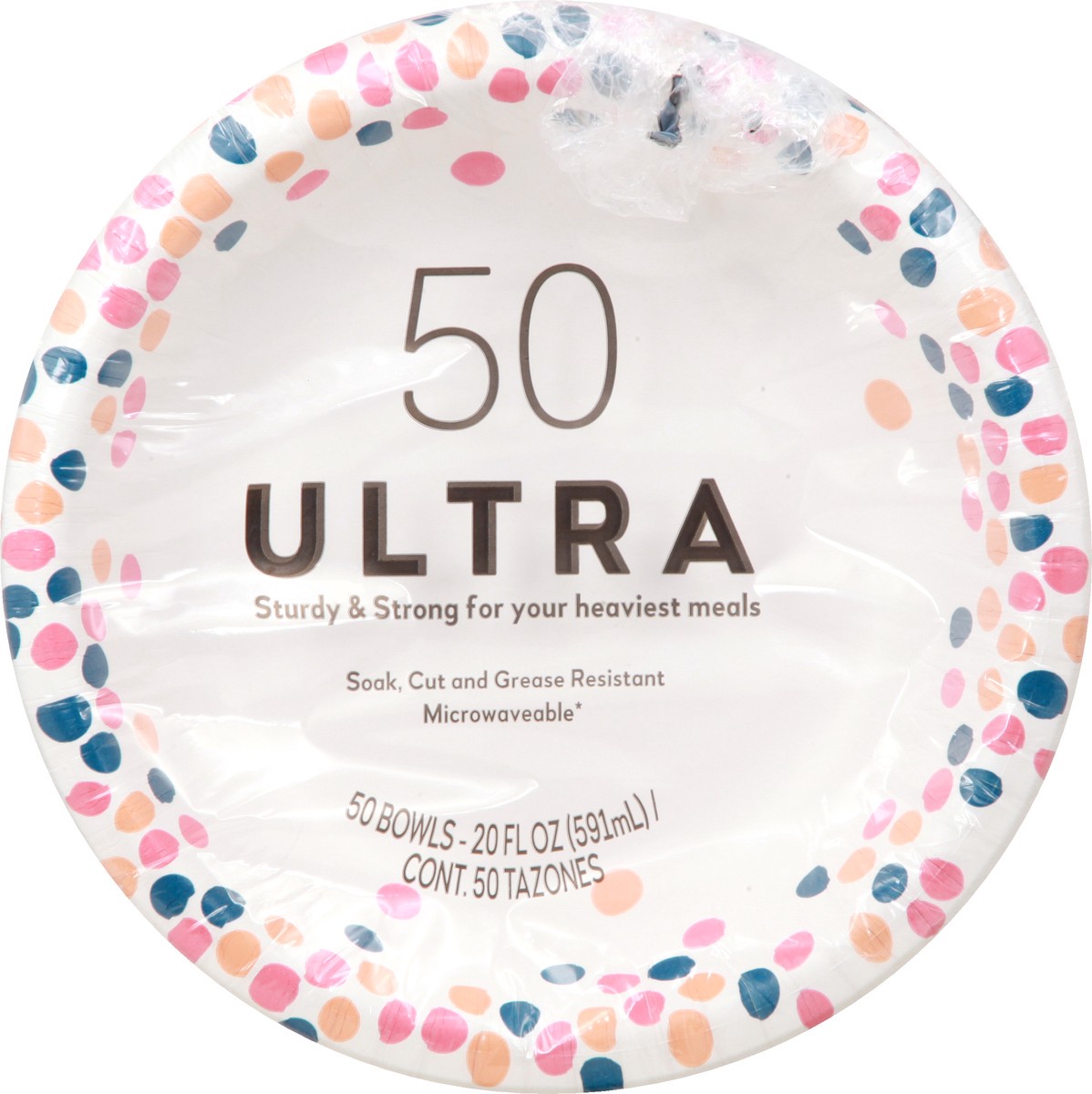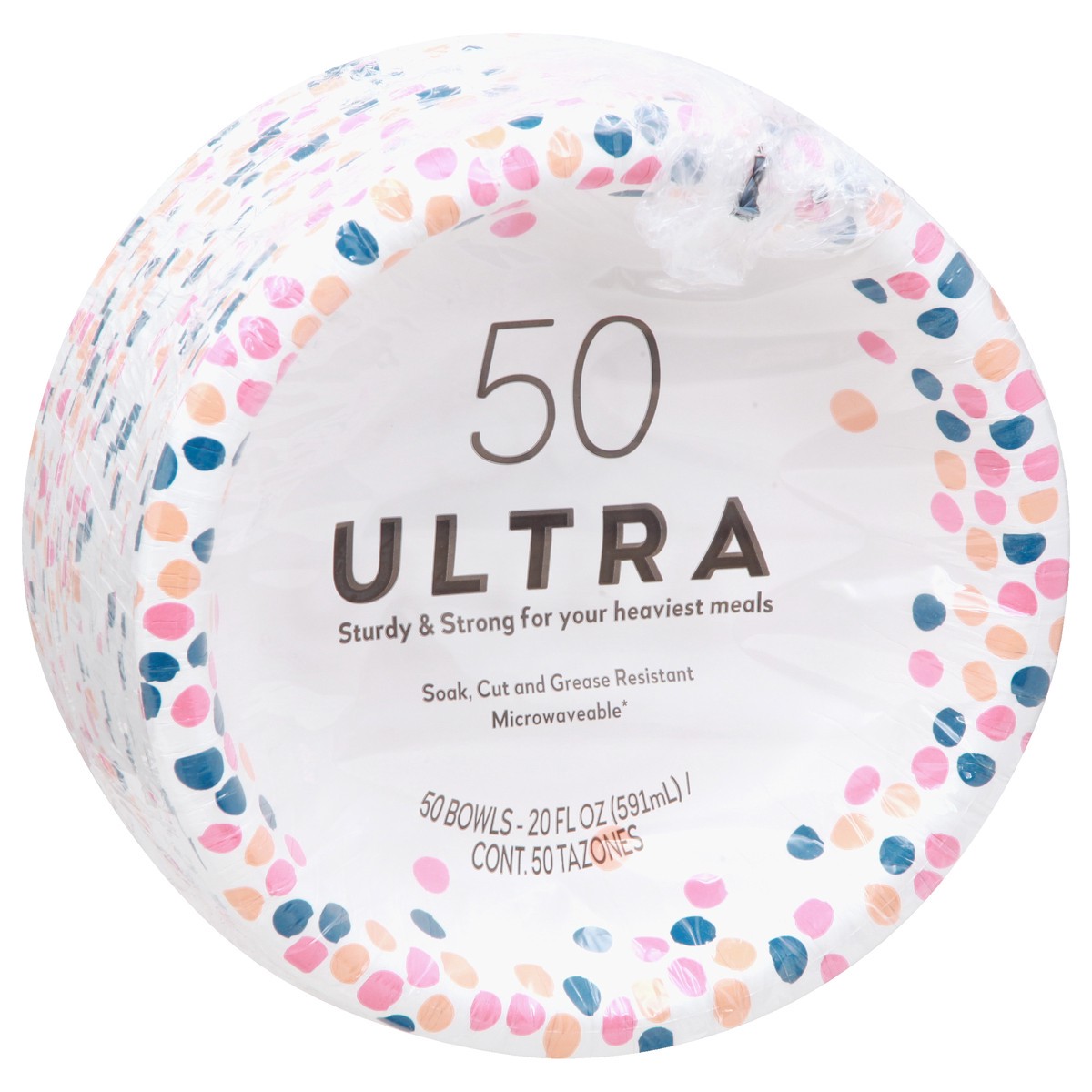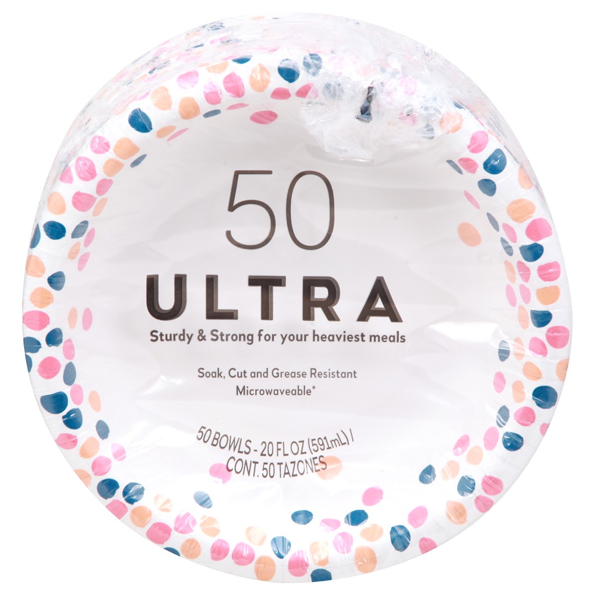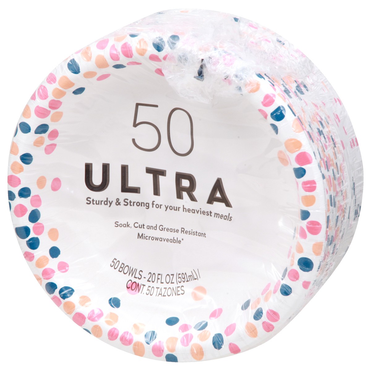 591 ml. Sturdy & strong for your heaviest meals. Soak, cut and grease resistant. Microwavable (Recommended only for limited microwave use in reheating food, do not use for cooking).