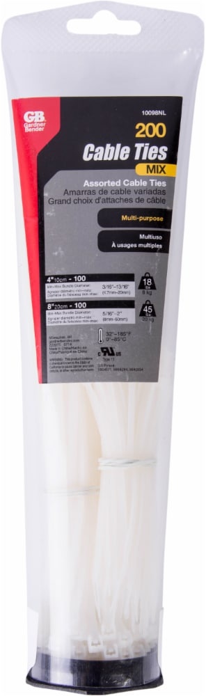 Gardner Bender Cable Ties - 200 Piece - White - 4 Inch/8 Inch