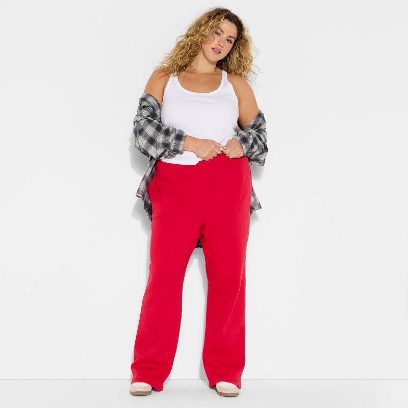Women's Mid-Rise Slim Straight Sweatpants - Wild Fable™ Berry Red XXL