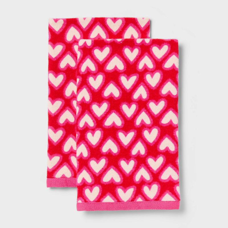 Celebrate the season of love with this 2-Pack Valentine's Day Scattered Heart Hand Towel Set from Room Essentials™. This pack includes two hand towels featuring allover scattered hearts print in a pin…