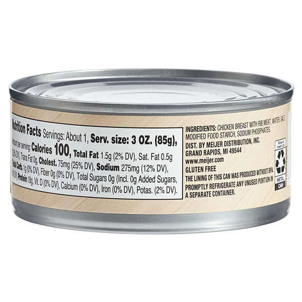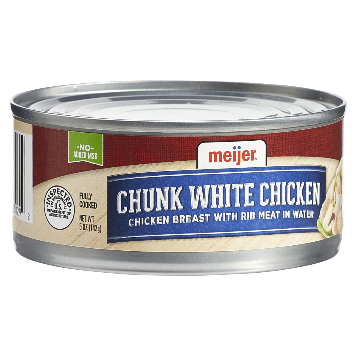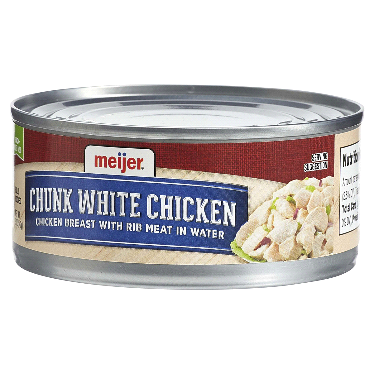 Make mealtime easy with Meijer Chunk Canned White Chicken. From savory salads to a winning gametime dip, this fullycooked, MSGfree chicken breast is a tender meat the entire family will enjoy. Stack i…