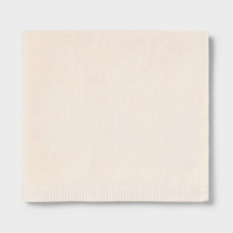 Elevate your bath experience with this Velour Bath Towel from Threshold™. This bath towel is designed in a rectangular shape and boasts a ribbed border. Made of 100% terry cotton, this velour towel fe…