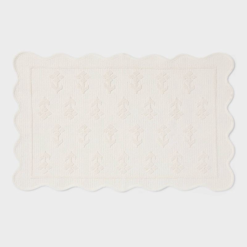 Spruce up your bathroom decor with this Mini Floral Scalloped Bath Rug from Threshold™. This woven bath rug showcases a raised floral pattern in a white hue with scalloped edges for a striking look. T…