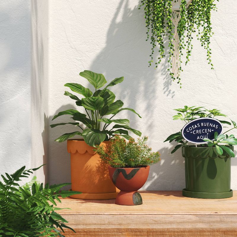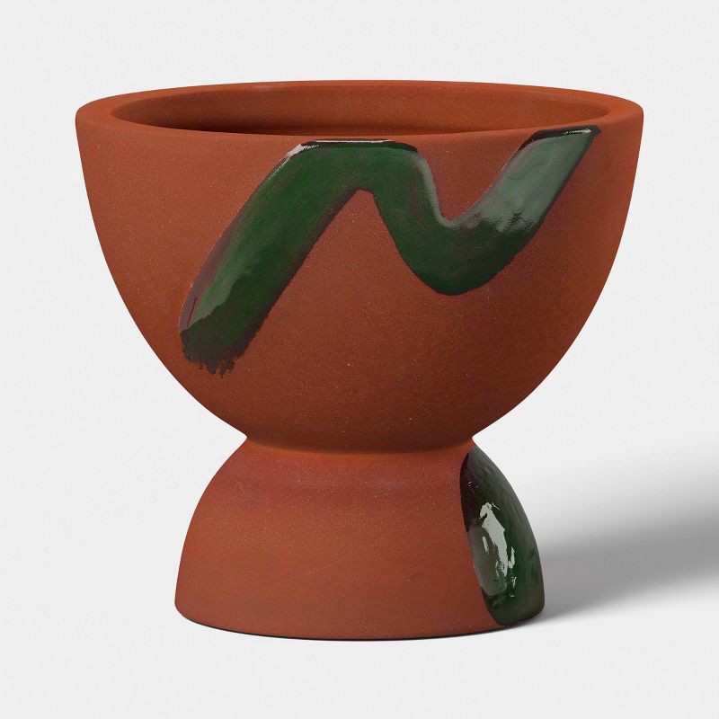 Bring timeless elegance to your sunroom or garden space with this Ceramic Outdoor Abstract Modern Planter Pot Terracotta from Threshold™. Made of terracotta, this planter pot has footed shape with a w…