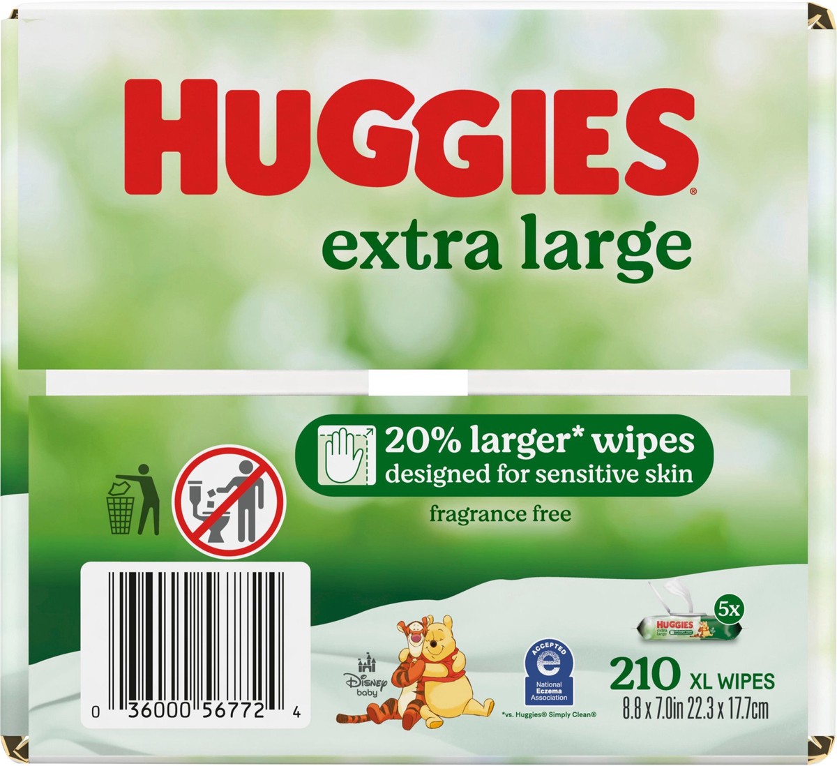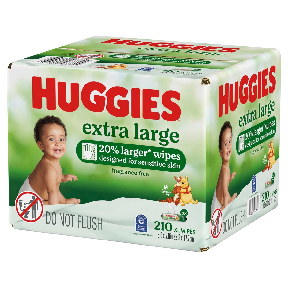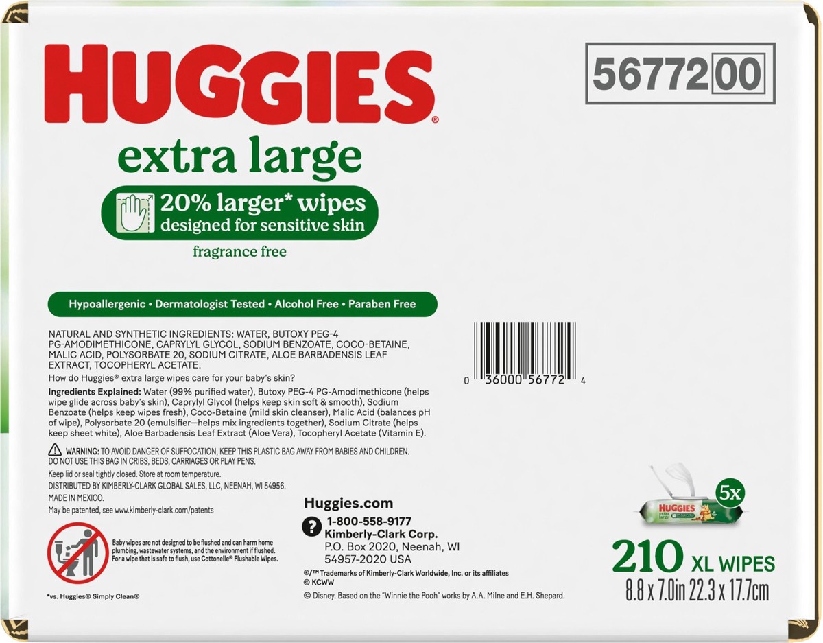 Huggies Extra Large Baby Wipes, Unscented, 5 Flip-Top Packs (210 Wipes Total)