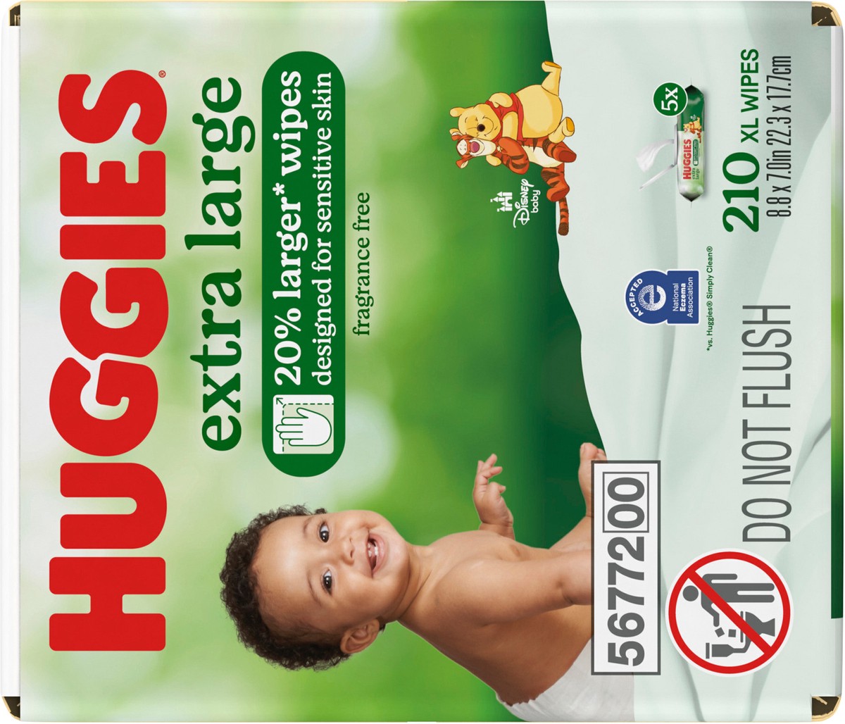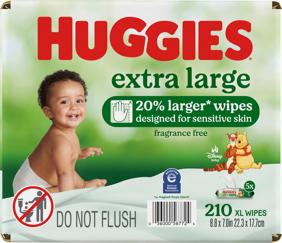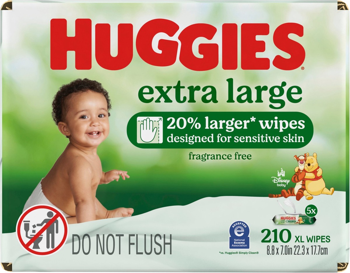 Huggies Extra Large Baby Wipes, Unscented, 5 Flip-Top Packs (210 Wipes Total)