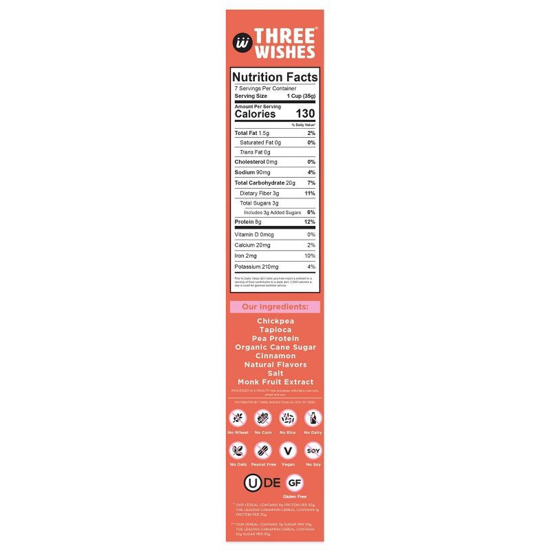 ingredients: chickpea, tapioca, pea protein, organic cane sugar, cinnamon, natural flavors, salt, monk fruit extract.