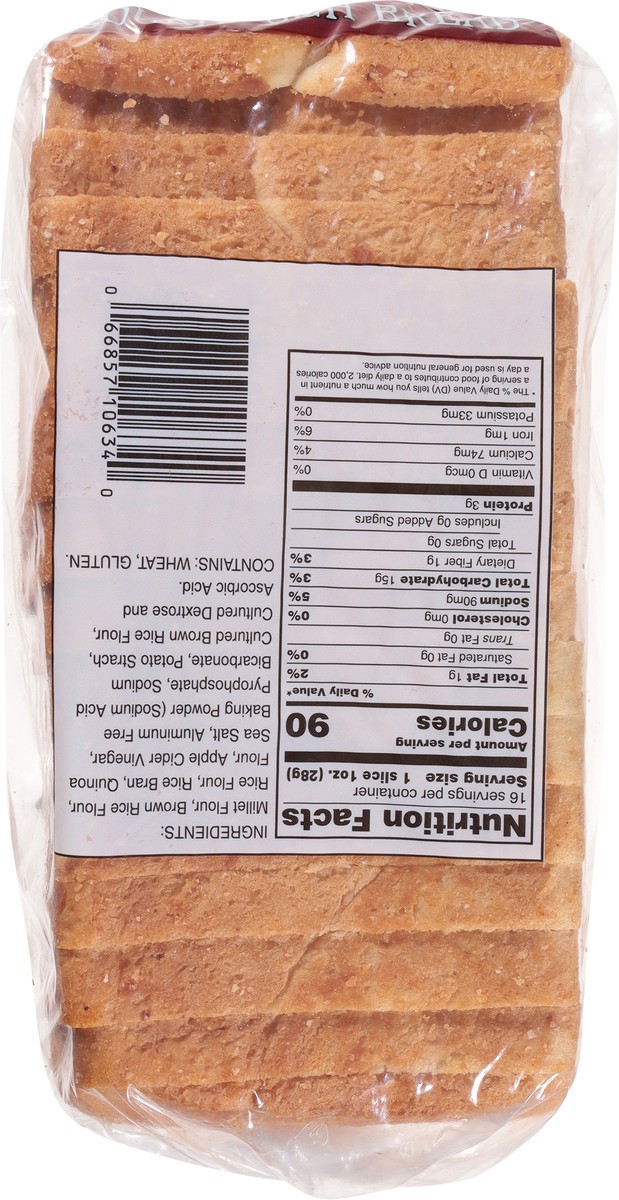 Millet Flour, Brown Rice Flour, Rice Flour, Rice Bran, Quinoa Flour, Apple Cider Vinegar, Sea Salt, Aluminum Free Baking Powder (Sodium Acid Pyrophosphate, Sodium Bicarbonate, Potato Strach, Cultured …