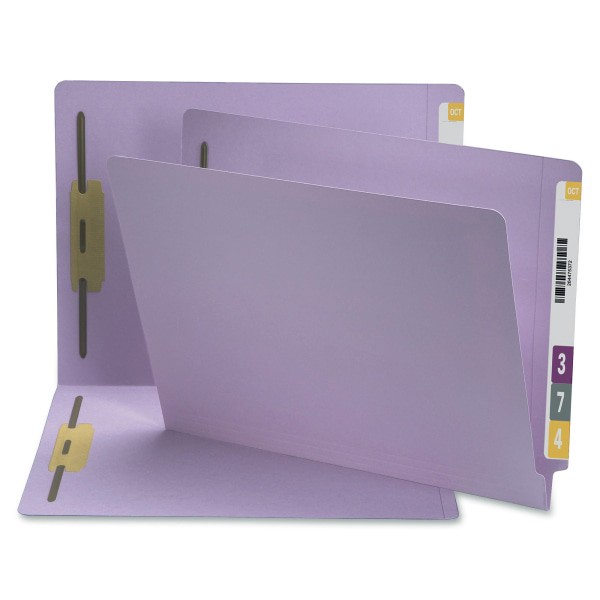 Smead End Tab Fastener File Folder, Shelf-Master Reinforced Straight-Cut Tab, 2 Fasteners, Letter Size, Lavender, 50 per Box