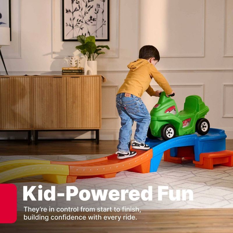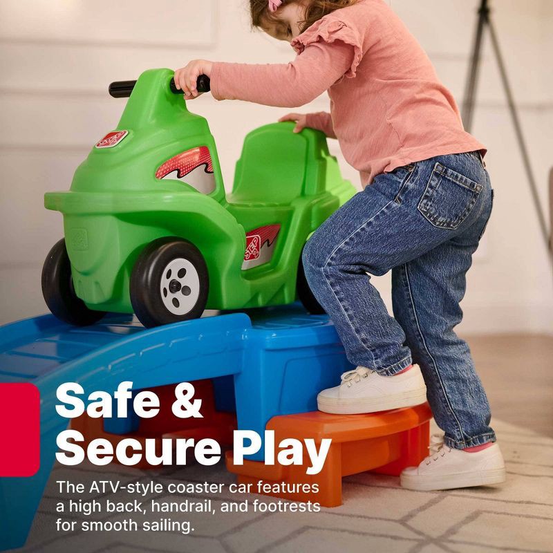 - KIDS' ROLLER COASTER: Bring home the thrills of the amusement park with the Step2 Racing Green Up & Down Roller Coaster Toy for Kids. Featuring a 9 ft. track and an ATV-style car, it'll provide hours of independent, active fun.