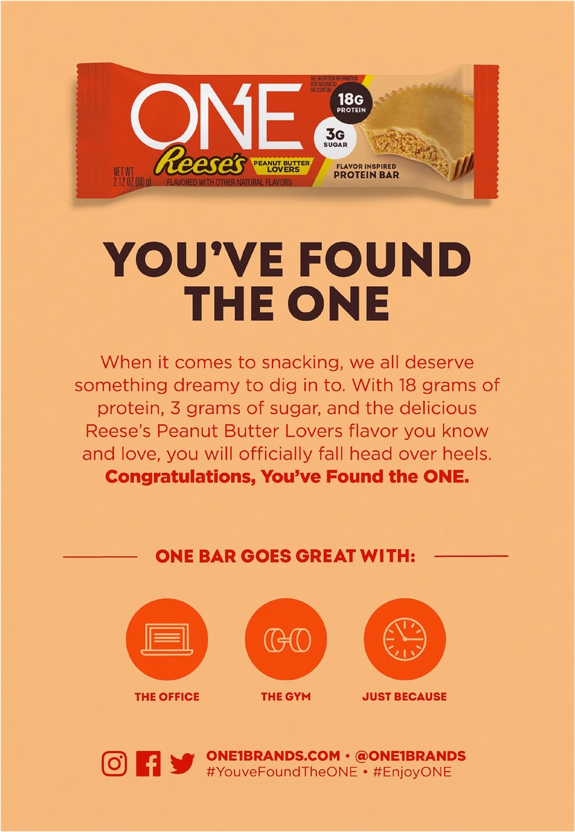 Calling all peanut butter lovers – it's time to go nuts! Fuel your workout or your work day with the power of ONE REESE'S Peanut Butter Lovers Flavor Inspired Protein Bars. Each gluten free protein ba…