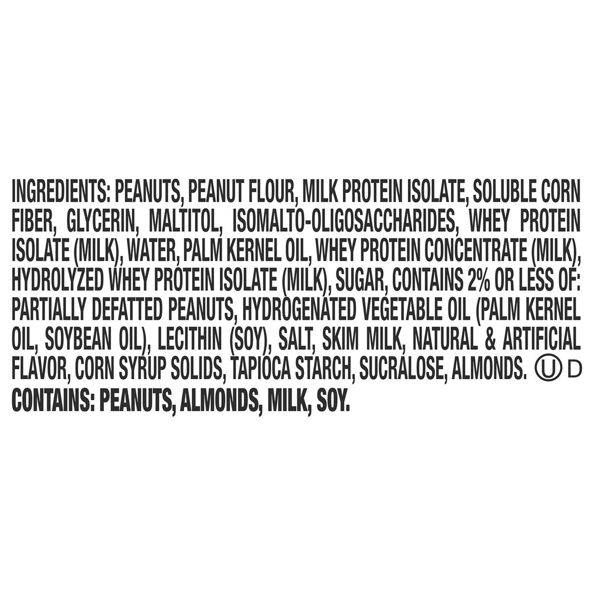 Peanuts, Peanut Flour, Milk Protein Isolate, Soluble Corn Fiber, Glycerin, Maltitol, Isomalto-Oligosaccharides, Whey Protein Isolate (Milk), Water, Palm Kernel Oil, Whey Protein Concentrate (Milk), Hy…