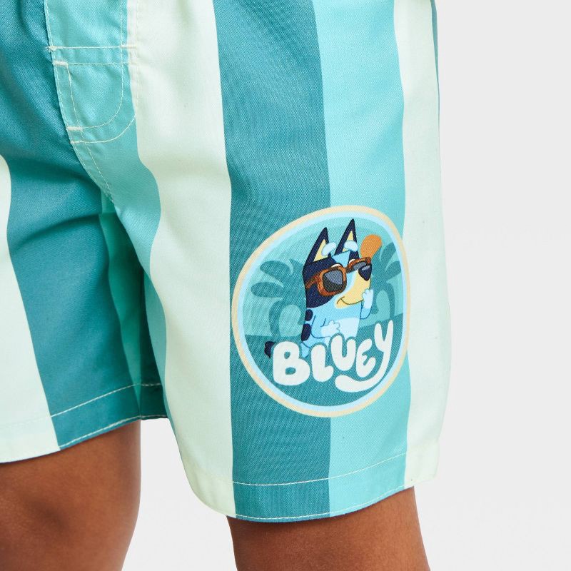 - Shorts are designed in blue-and-white stripes and Bluey patch on one leg