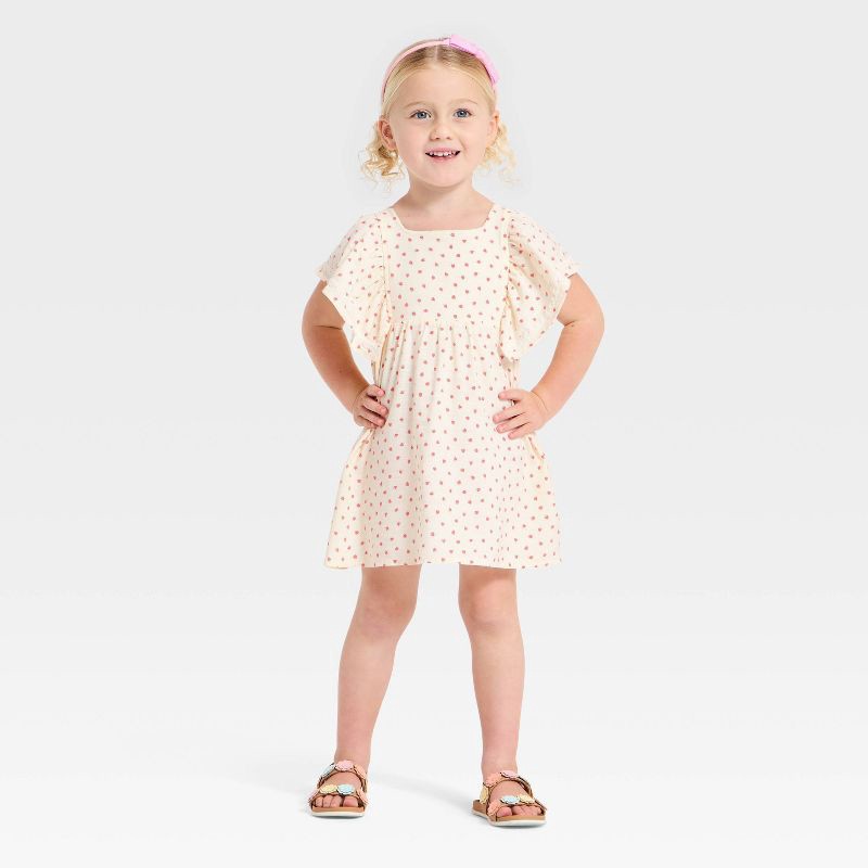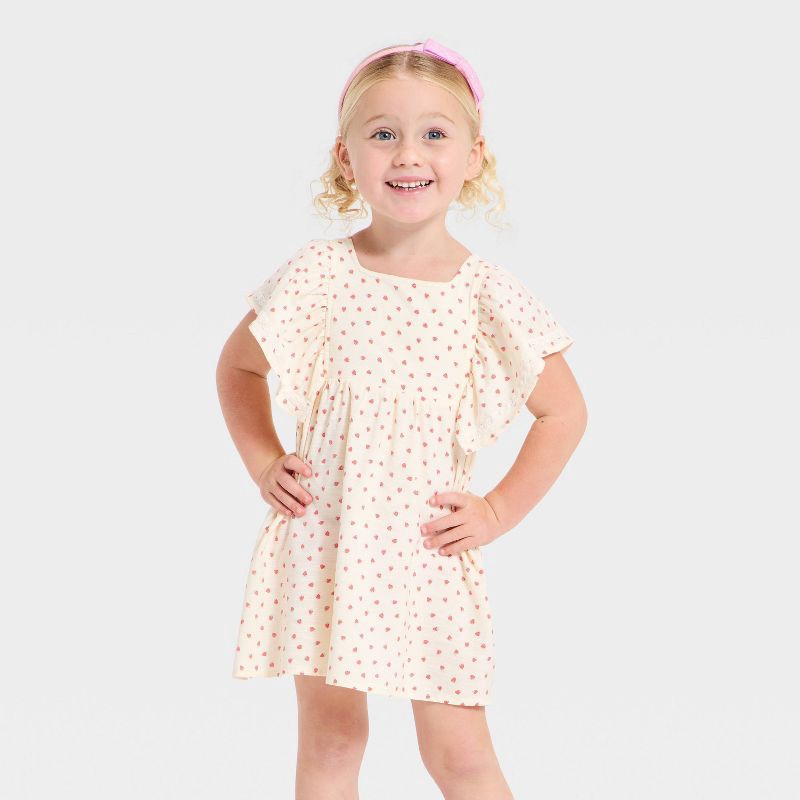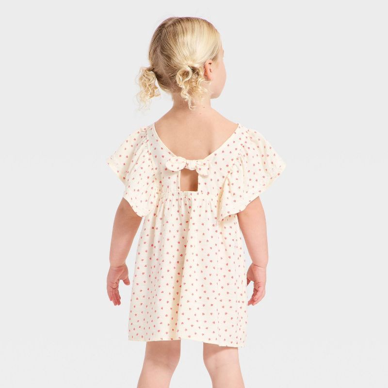 Add a charming touch to their everyday wardrobe with this Woven Short-Sleeve Dress from Cat & Jack™. The short-sleeve dress sports a square neckline, ruffled short-sleeves and keyhole bow-tie detailin…