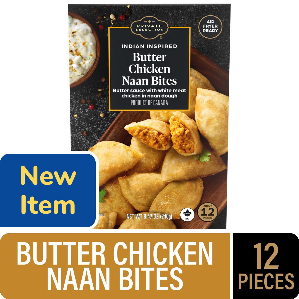 Private Selection® Butter Chicken Naan Bites are a delicious treat! They expertly combine creamy, buttery chicken with Tandoori spices all wrapped in golden naan dough. They're air fryer ready for a q…