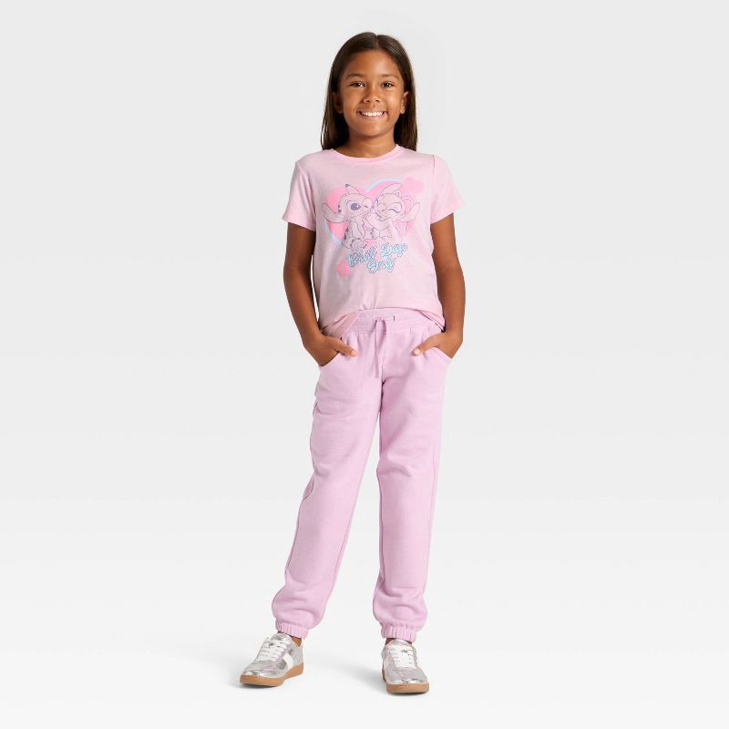Style for a casual day out with the Girls' Stitch and Angel 'Chill Days Only' Short Sleeve Graphic T-Shirt in Light Pink. Featuring a playful Stitch and Angel-inspired design, this tee brings a fun vi…