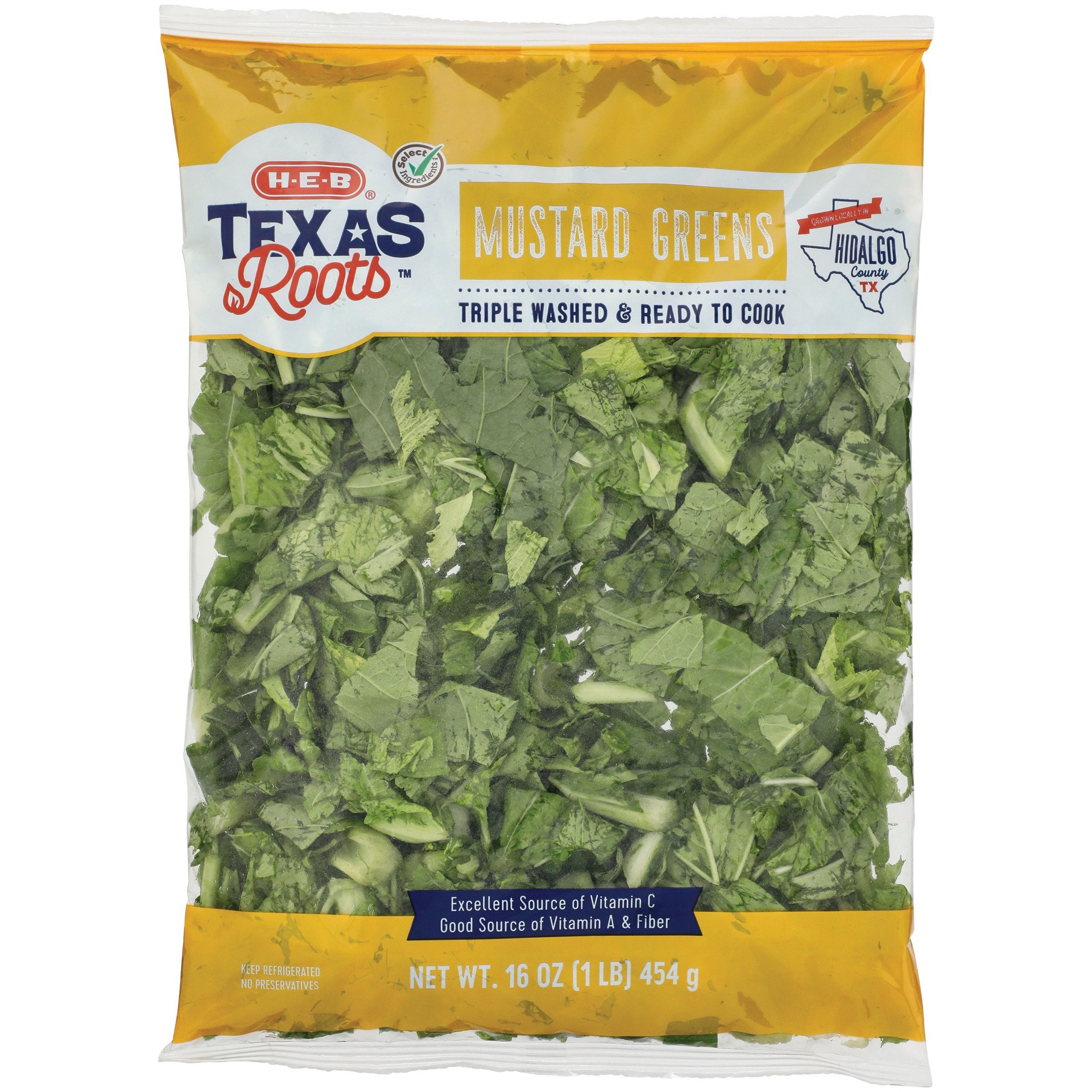From Texas, these H-E-B Texas Roots mustard greens are triple-washed and ready to cook. Offering an excellent source of vitamin C, they're delicious sautéed in olive oil, slow-cooked with black-eyed p…