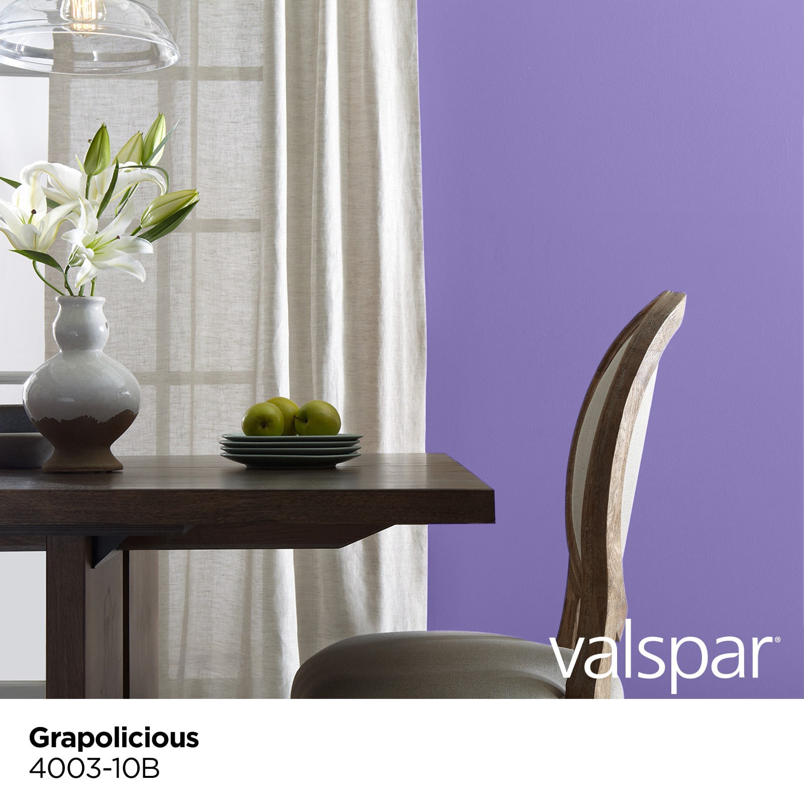 A bright, medium purple. Eggshell finish is a versatile choice for most rooms, especially for spaces that may require frequent touchups. One-coat coverage. Colors stay true longer. Ultra-rich, fade-re…