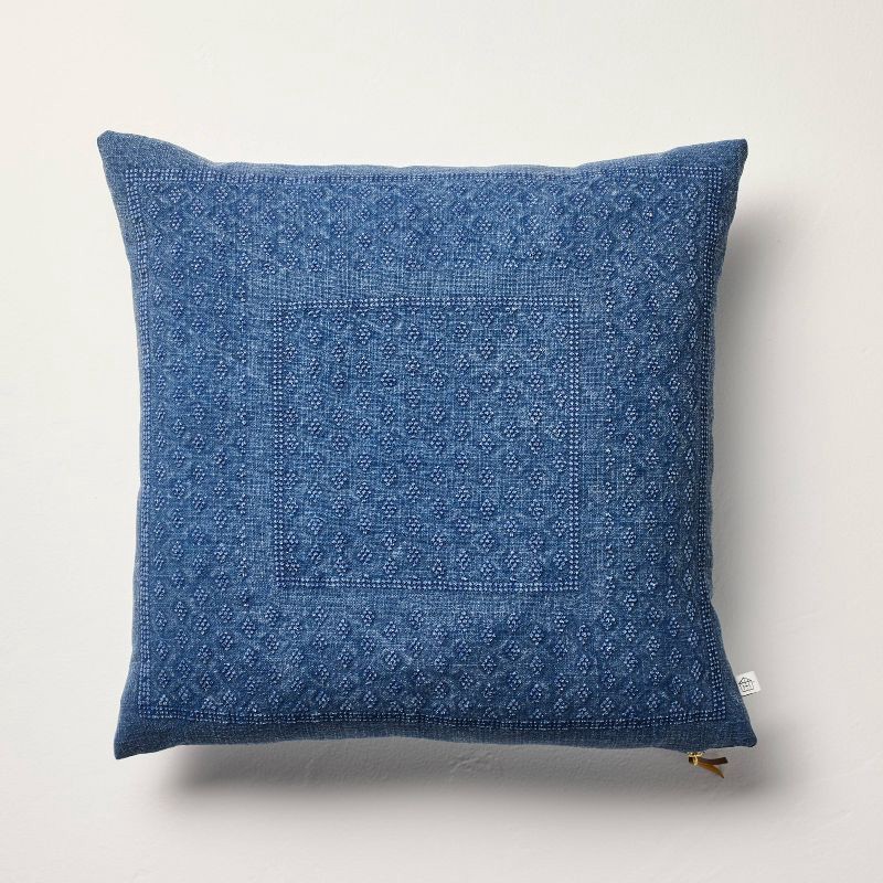 Hearth & Hand with Magnolia 18"x18" Embroidered Square Throw Pillow Navy - Hearth & Hand™ with Magnolia