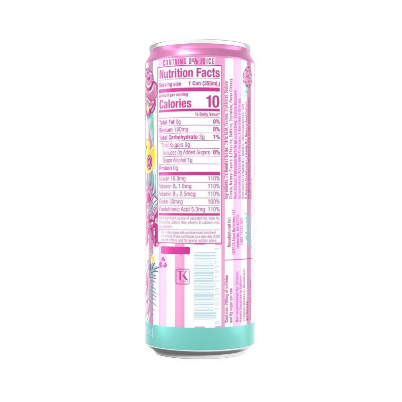 Carbonated Water, Citric Acid, Taurine, Erythritol, Sodium Citrate, Natural Flavors, L-Theanine, Caffeine, Sucralose, Panax Ginseng Root Extract, Potassium Sorbate (Preservative), Sodium Benzoate (Pre…