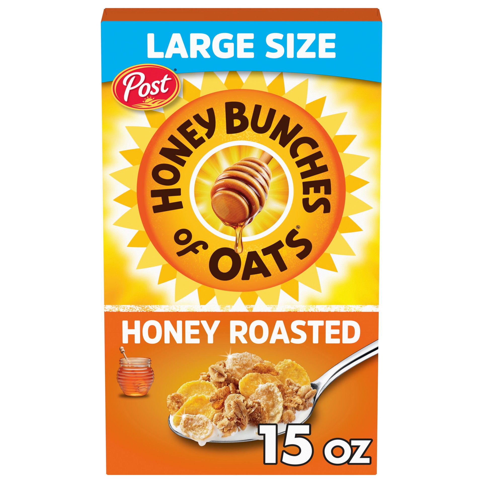 Post Honey Bunches of Oats Honey Roasted Breakfast Cereal, Honey Roasted Cereal with Granola Clusters, 15 oz Box