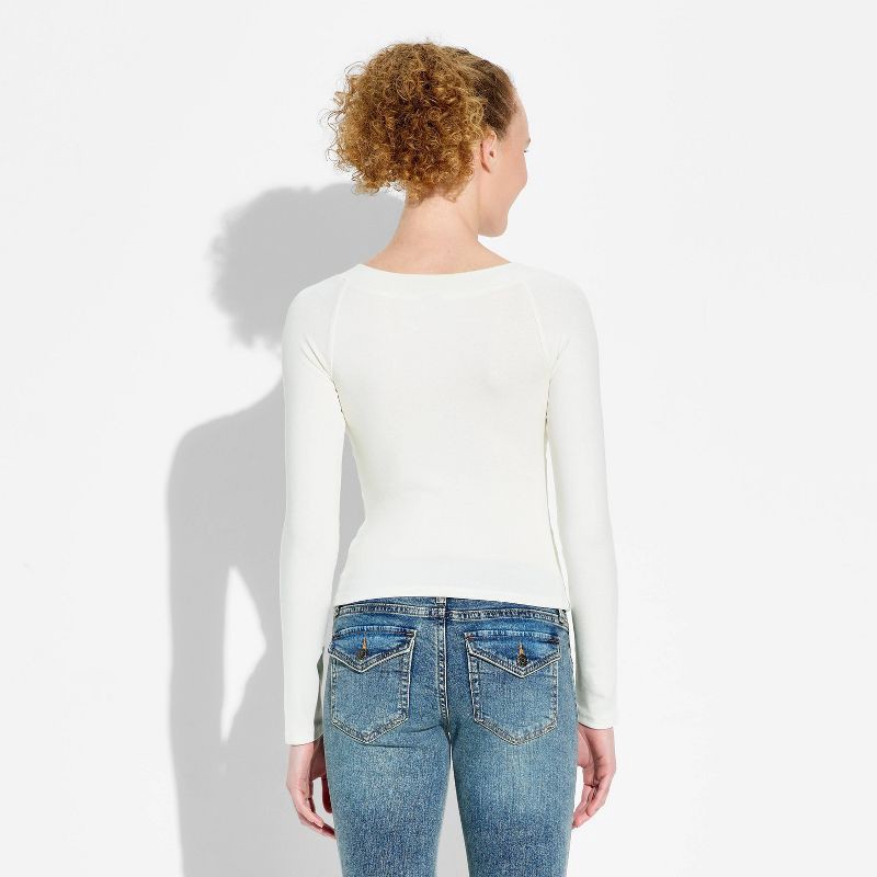 Women's Slim Fit Long Sleeve Boat Neck Ribbed T-Shirt - Wild Fable™ Off-White S