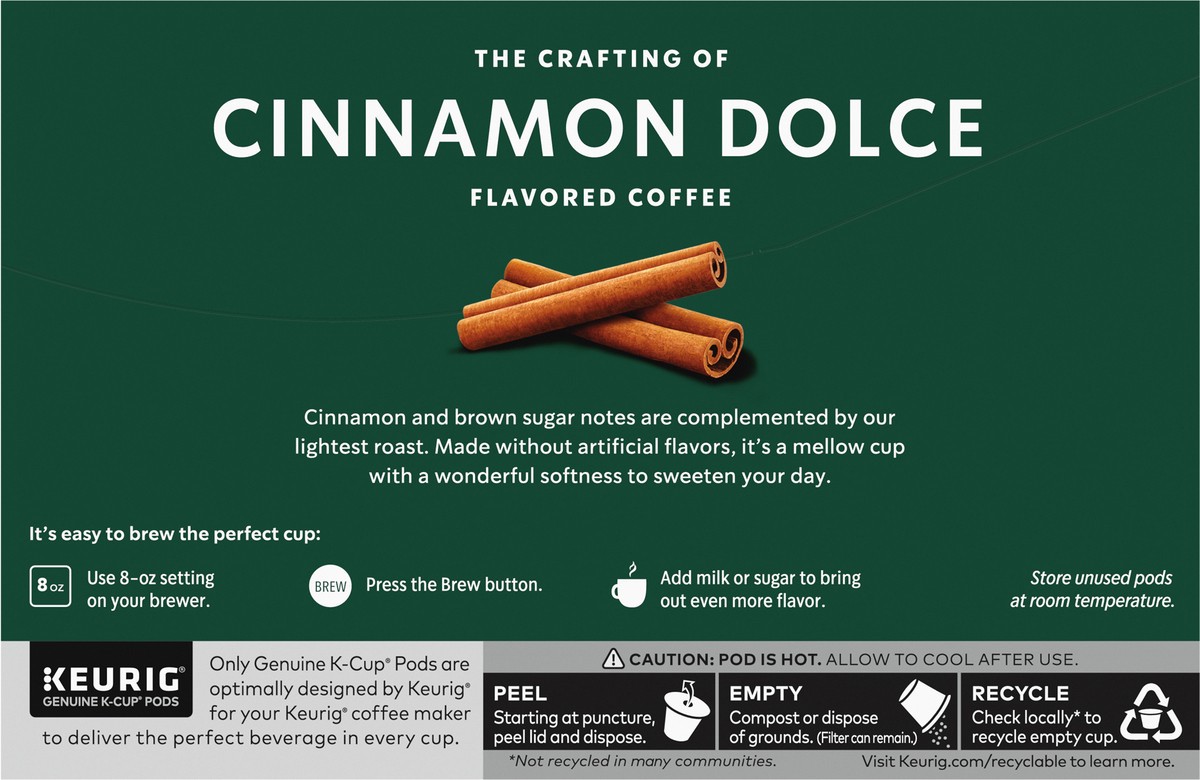Keurig - Genuine K-Cup Pods. Sweet & mellow notes. The crafting of Cinnamon Dolce flavored coffee. Cinnamon and brown sugar notes are complemented by our lightest roast. Made without artificial flavor…