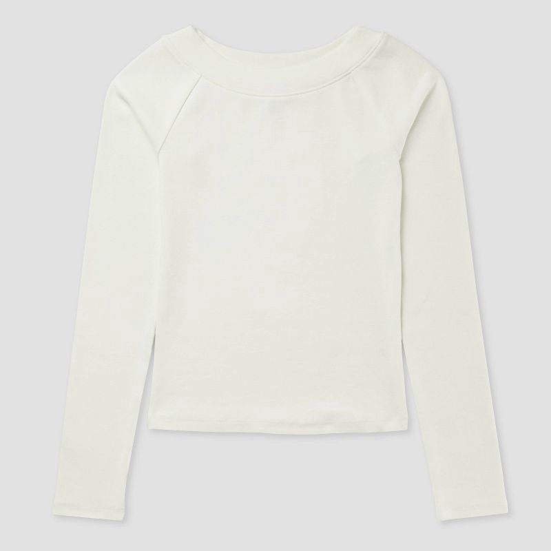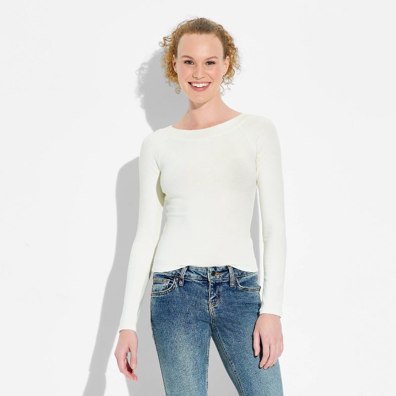 Women's Slim Fit Long Sleeve Boat Neck Ribbed T-Shirt - Wild Fable™ Off-White M
