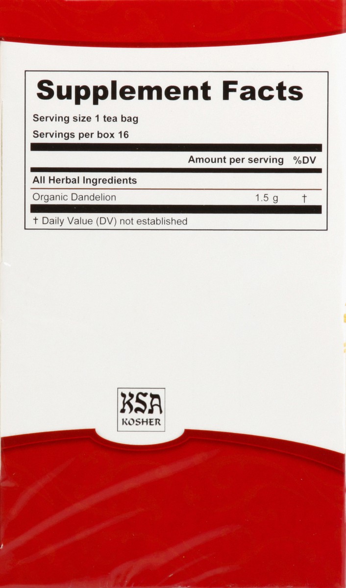 Herbal Tea Supplement. USDA Organic. Certified organic by QAI, Inc. No caffeine. Organic Dandelion is known to enhance liver function and protection. Supporting and protecting the liver is essential t…